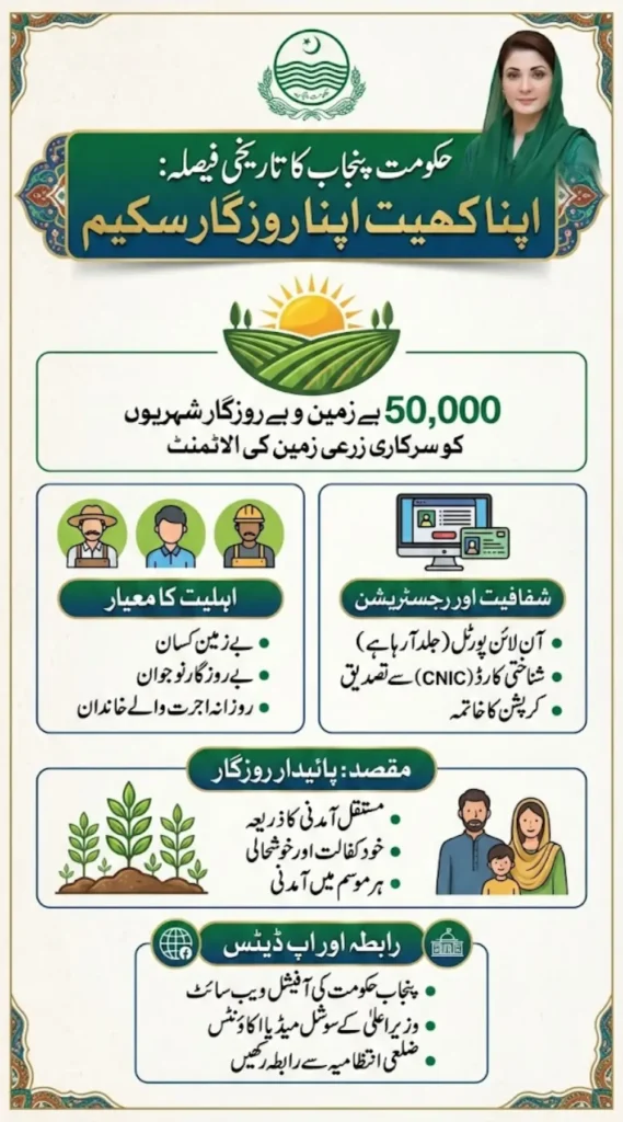 Breaking Alert: Punjab Government is finalizing the official web portal for the Apna Khet Apna Rozgar Scheme, where 50,000 landless citizens will register for agricultural land allotment. Chief Minister Maryam Nawaz Sharif personally approved this historic program in the 32nd cabinet session, and authorities are now racing to launch the application system.
