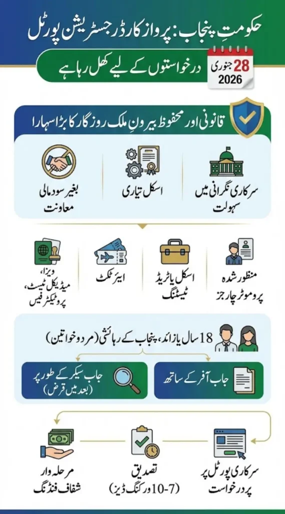 Government of Punjab has officially announced a major update for job seekers aiming to work abroad. The Parwaz Card Registration Portal is set to open on 28 January 2026, marking a significant step toward safer, legal, and more affordable overseas employment for Punjab residents.